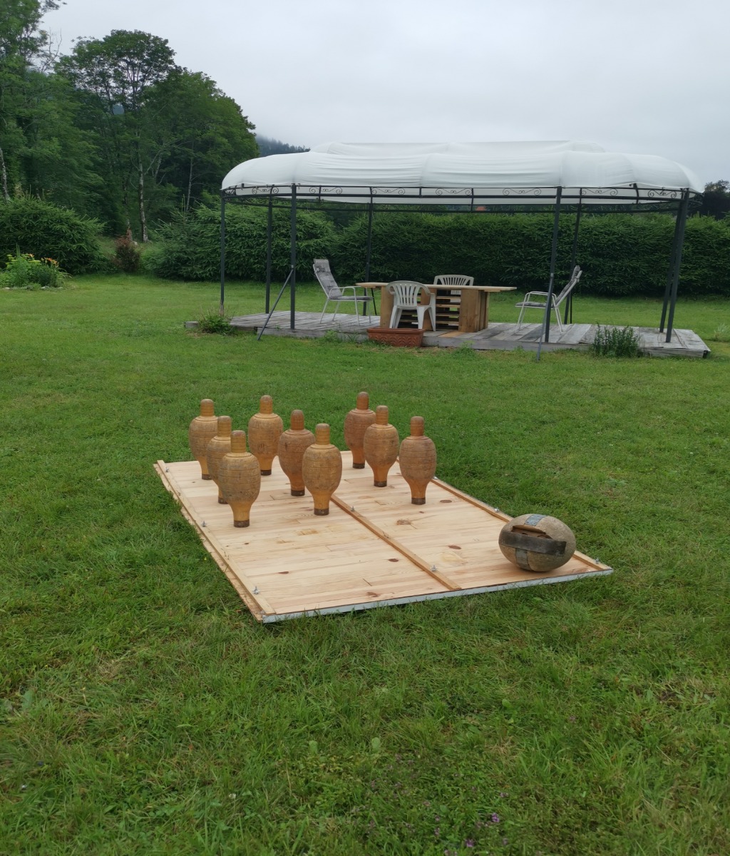 A l’extérieur, profitez du magnifique domaine de 3000m2 (en commun avec 3 autres gîtes). Un grand jardin paysagé et arboré avec jeux pour enfants, table de ping-pong et terrain de pétanque.